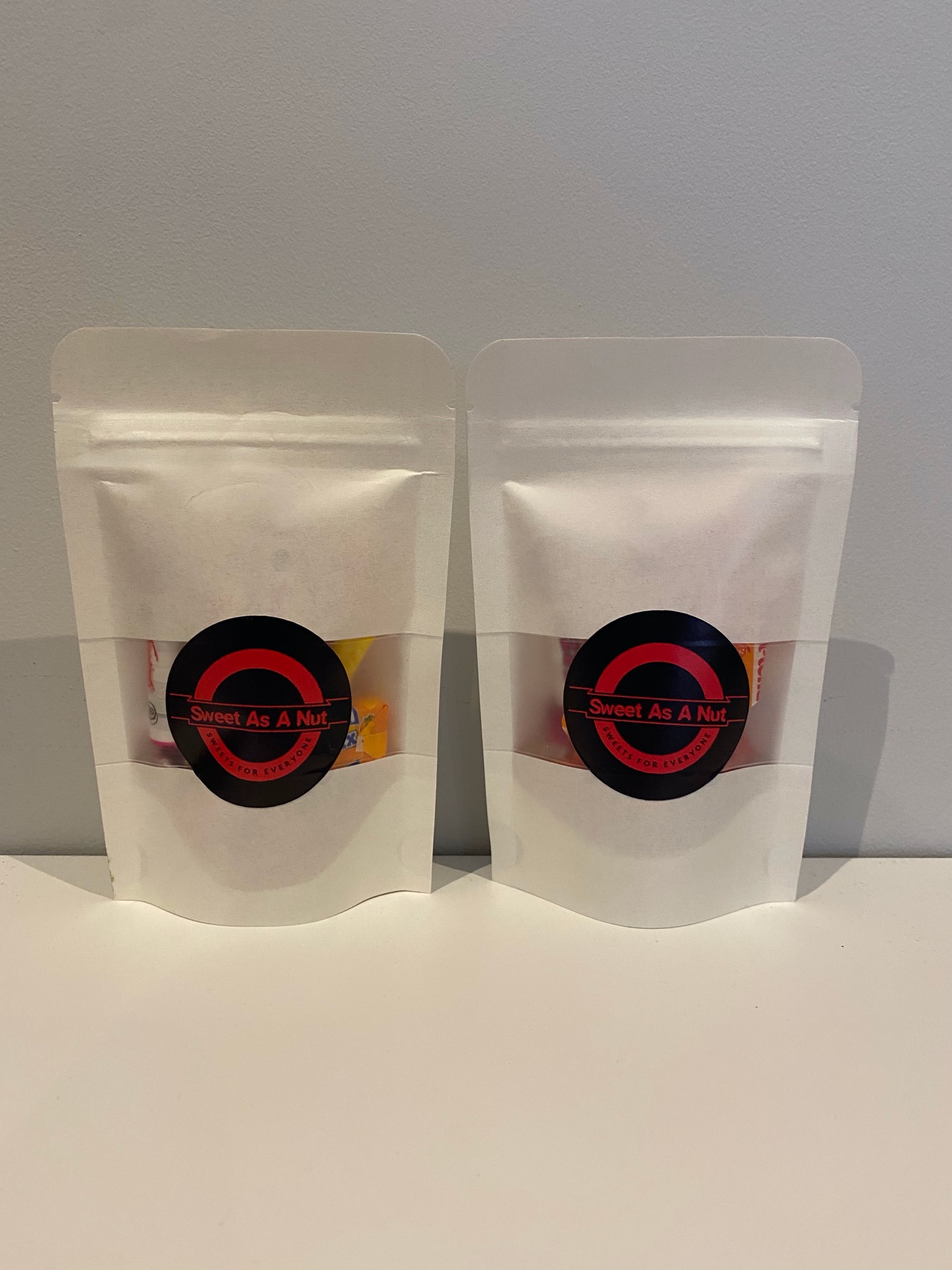 Hi, we are Sweet as a Nut, the best Pick 'n' Mix E-Shop in the UK. We sell a number of sweets (individually wrapped) in our Pick 'n' Mix bags. For £1, you get 50g, for £2, you get 200g. Recently (March 2022) we have released an all new Booster Bag - 500g for £5. If you have any queries, reviews, or general enquiries please do not hesitate to message us on either Instagram, Facebook, Twitter or TikTok.